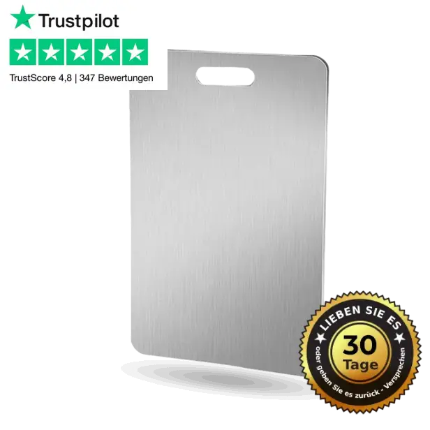 **Katuchef** ist das Titan-Schneidebrett, das genau das möglich macht. Glatt, hygienisch und langlebig – es schützt deine Familie vor versteckten Mikroplastikpartikeln und Bakterien und spart dir Geld für Ersatzbretter.